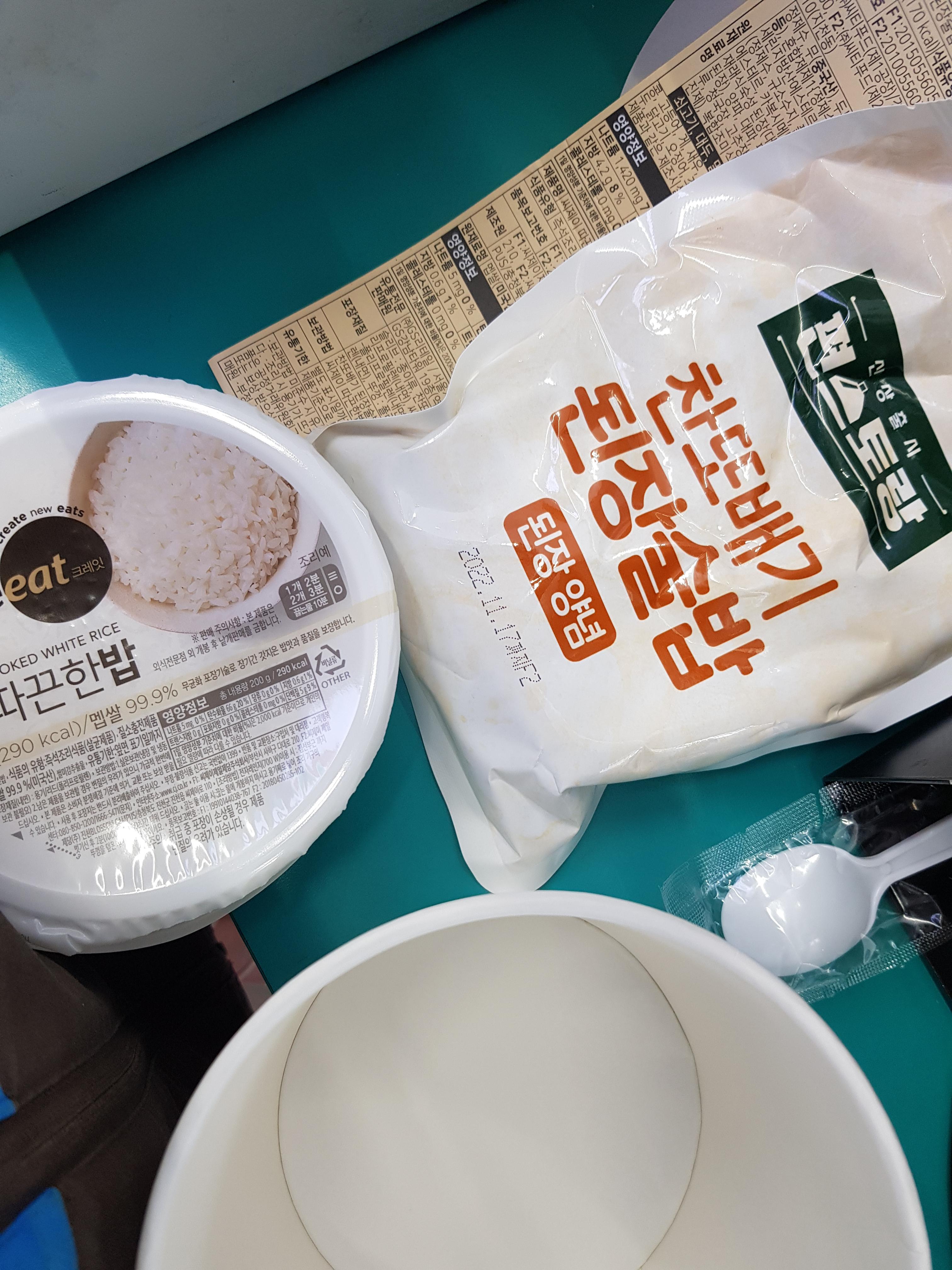 밥이랑 국, 숟가락으로 구성되어있어요.